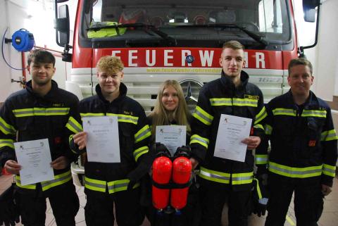 FM Mariella Geizenauer, FM Sebastian Fehr und FM Nikolaus Nikisch belegten Ende September das zweitägige Modul "Atemschutzträger" in der Feuerwehr Krems und absolvierten diese Ausbildung, die sich aus theoretischen Grundlagen und praktischen Teilen zusammensetzt, mit Erfolg. Somit verstärken die jungen FF-Mitglieder das Team der Atemschutzträger der FF Rohrendorf.