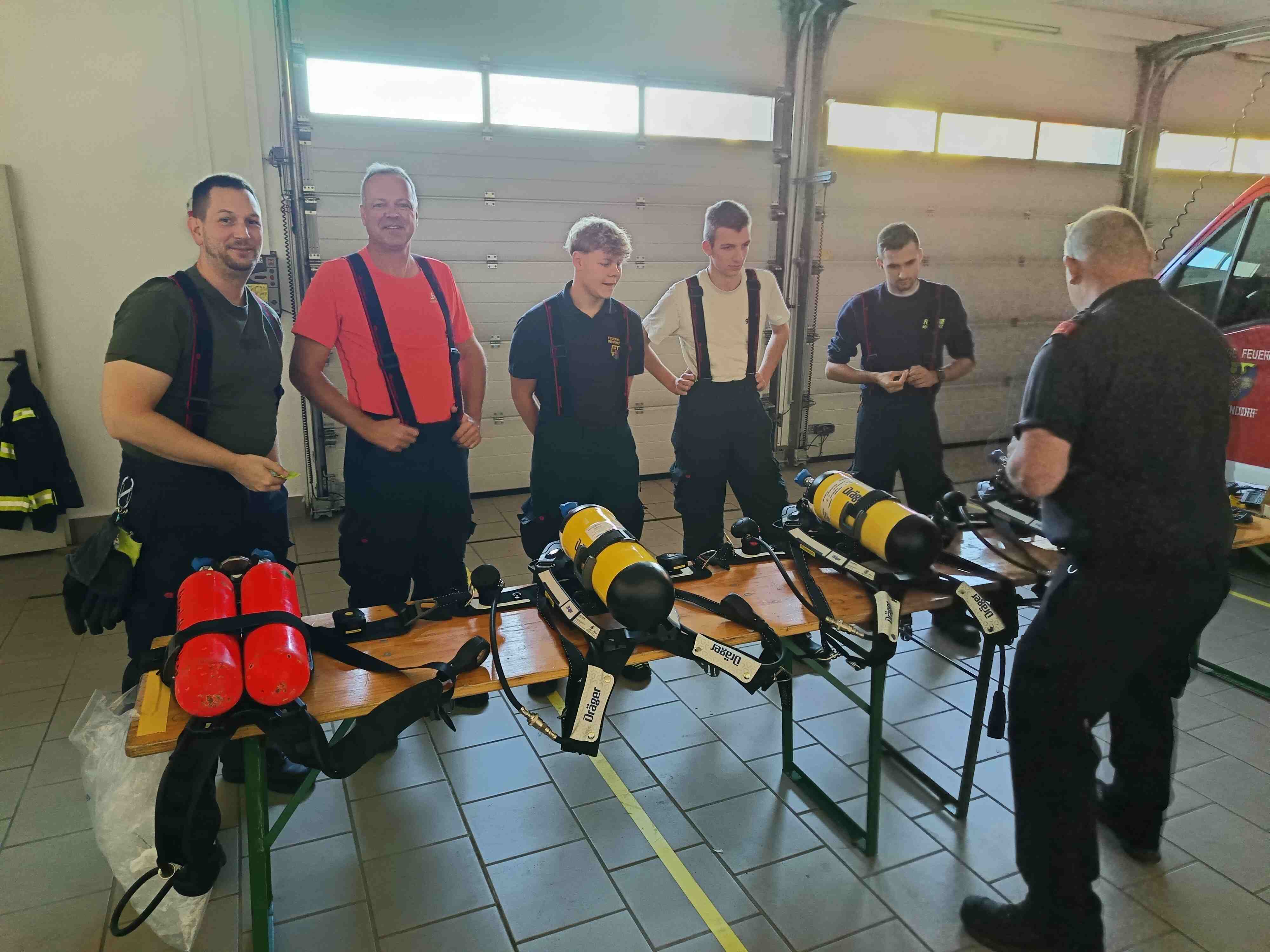 Die Feuerwehr Rohrendorf investierte für Brandeinsätze in neue Atemschutzgeräte, die die in die Jahre gekommene Ausrüstung ersetzt und nunmehr nach einem Schulungstag in Betrieb gestellt wurden. Kdt.-Stv. OBI Karl Fehr schulte am Samstag, 4.10.2025 in Kleingruppen zu je sechs Mann die tauglichen Atemschutzträger der Feuerwehr Rohrendorf praktisch und theoretisch auf die neuen Geräte ein: Es handelt sich dabei um Überdruckgeräte der Firma Dräger mit je 300 bar. Angeschafft wurden sechs Geräte, die ab sofort im KLF positioniert werden. Die neuen Atemschutzgeräte wurden zukunftsweisend auch bereits für den Einbau in das neu anzuschaffende HLF 2 angekauft. Durch diese Erneuerung der Feuerwehrausrüstung wurde auch in die Sicherheit der Kameraden investiert, da die neuen Geräte mit einem sogenannten Totmann-Warner und Maskenfunk ausgestattet sind. Gemeinsam mit der neuen Atemschutzüberwachung wird der befehligende Gruppenkommandant über Einsatzdauer und Gesundheitszustand des Atemschutzträgers informiert.