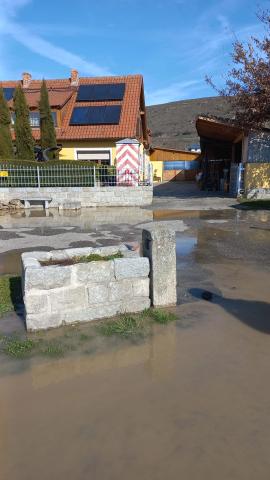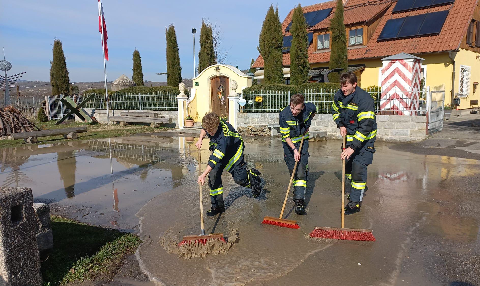 Beim Eintreffen am Einsatzort stellte sich heraus, dass der Parkplatz sowie die Hauseinfahrt bereits unter Wasser standen. Gemeinsam mit der Polizei wurde die Einsatzstelle abgesichert.