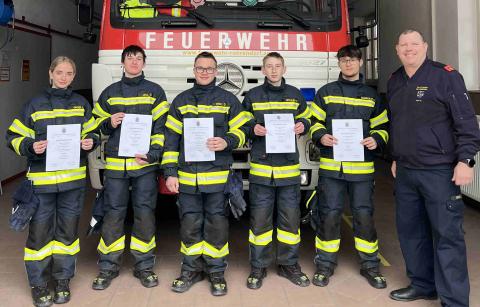 Der Abschluss Truppmann, kurz ASTRM, erfolgte am 28.03.2026: Nach mehrwöchiger Ausbildung in der eigenen Feuerwehr und dem Feuerwehrbasiswissen (FWBW) am 20. bis 21.03. sowie 27. bis 28.03. in DĂŒrnstein und Joching freuten sich folgenden Kameraden ĂŒber den positiven Abschluss:
