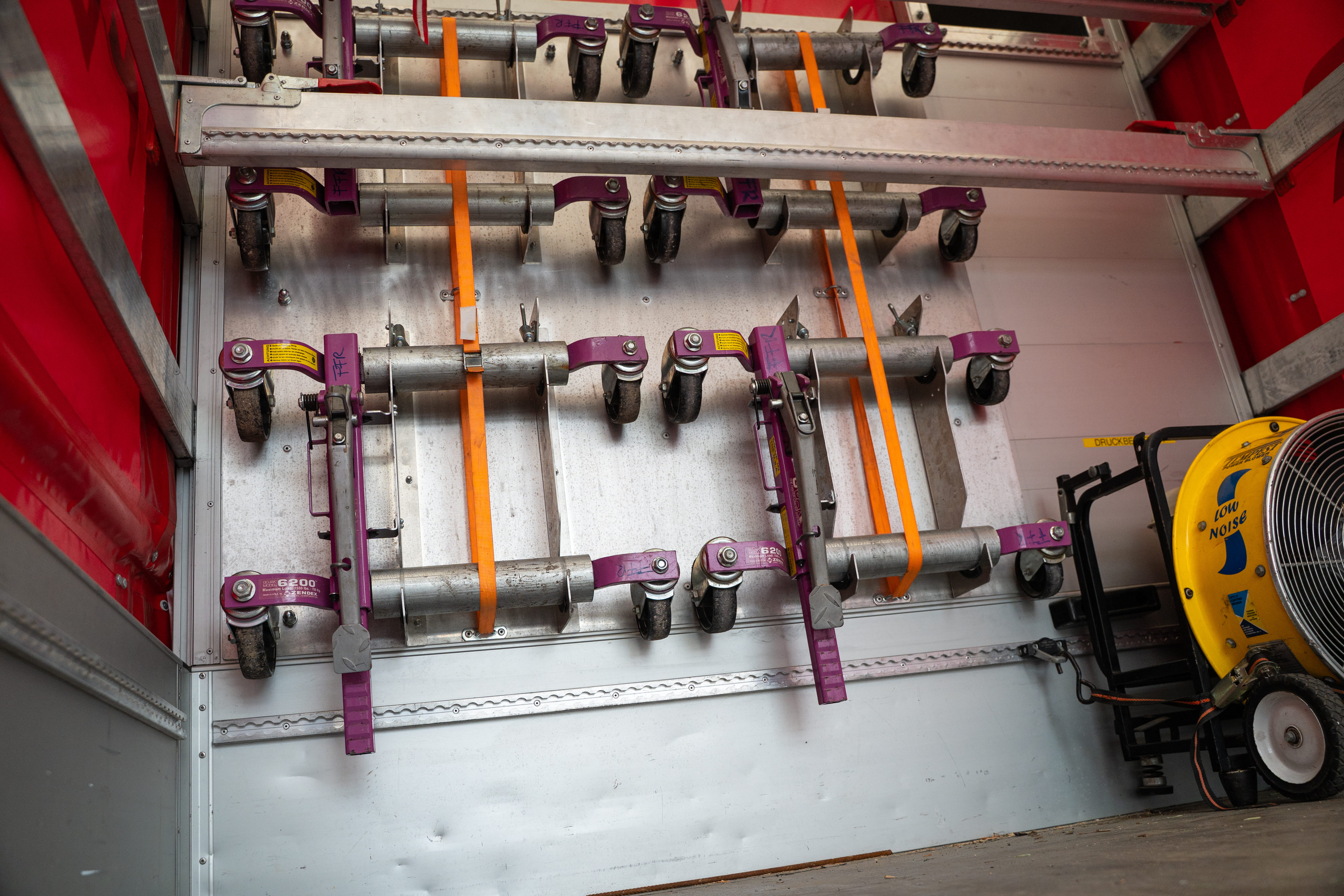 Zusätzlich zur Pflichtbeladung ist auf diesem Fahrzeug unser Überdruckbelüfter und unsere 4 Rangierroller für das Bergen von Fahrzeugen gelagert.