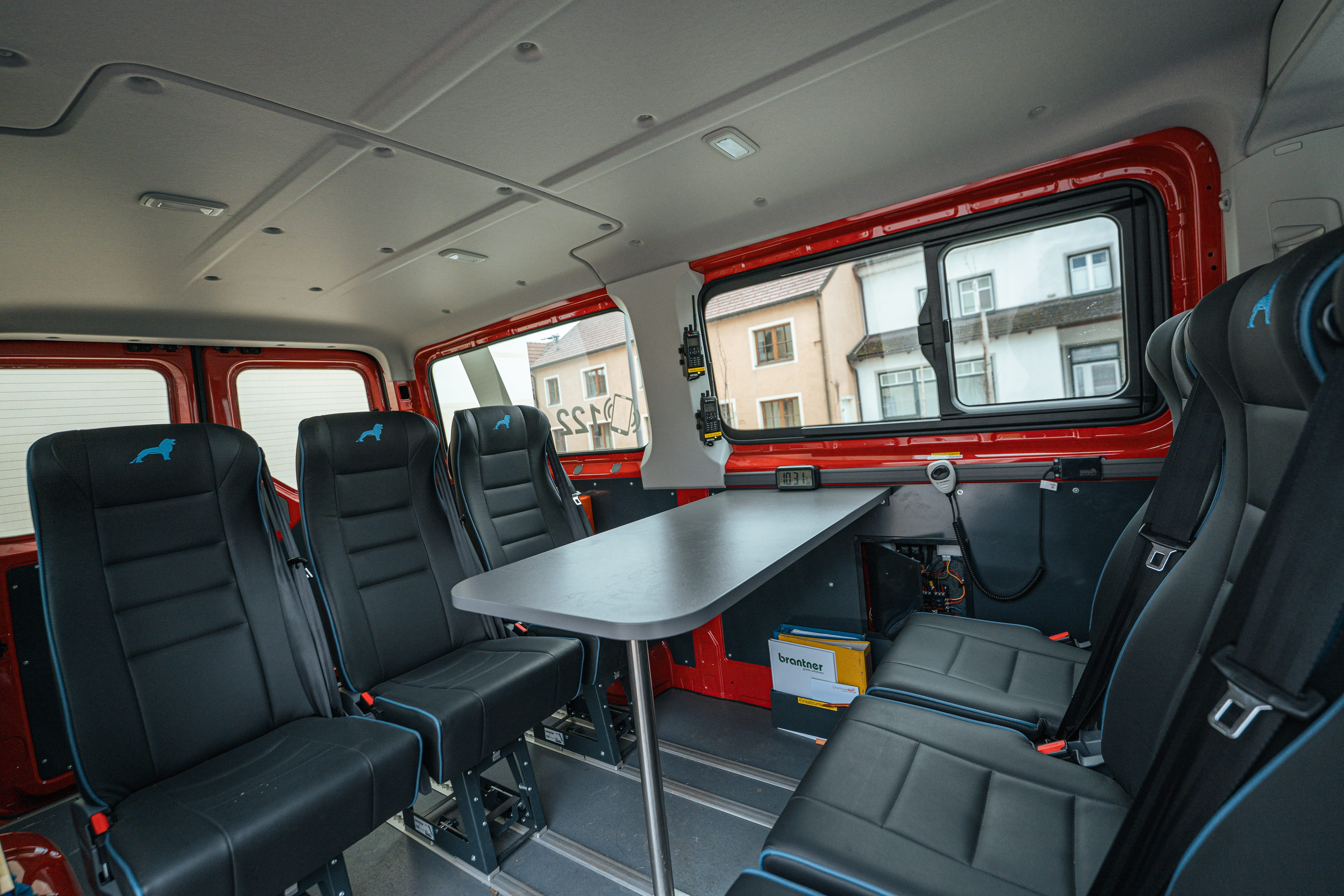 Besetzt ist das Fahrzeug mit bis zu 9 Personen und dient als Mobile Einsatzleitung und für den Transport von Feuerwehrmitgliedern oder Material.