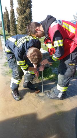 Beim Eintreffen am Einsatzort stellte sich heraus, dass der Parkplatz sowie die Hauseinfahrt bereits unter Wasser standen. Gemeinsam mit der Polizei wurde die Einsatzstelle abgesichert.